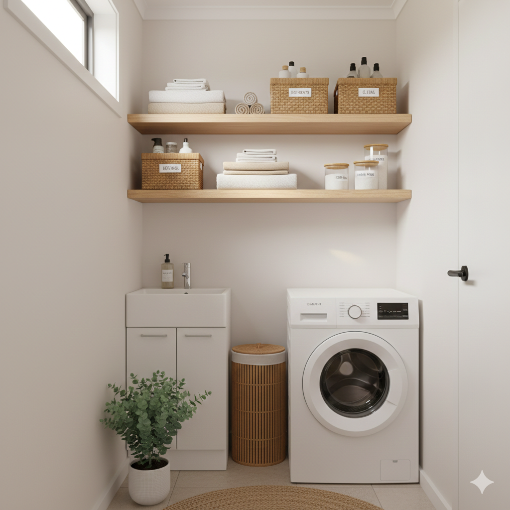 Homes, especially in capital cities, are getting smaller. Think vertically with wall-mounted shelving, over-door organisers, and tall narrow storage units. This is particularly effective in bathrooms and laundries where floor space is limited.