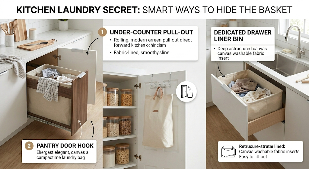 - Under-Counter Pull-Out: Install a slim pull-out bin or a small fabric-lined basket inside a lower cabinet. This keeps dirty linens completely hidden and easy to grab when full.
