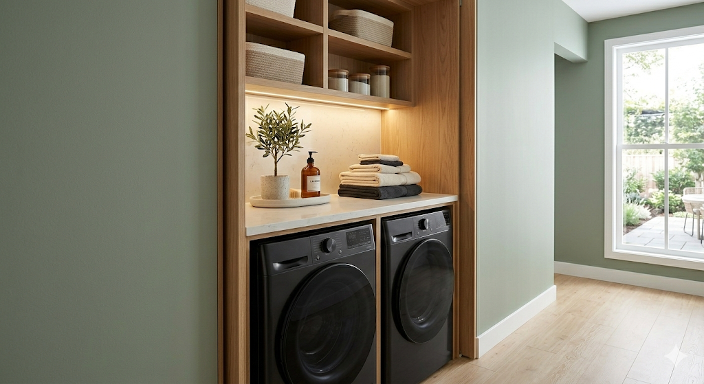 Hiding your laundry isn’t just about aesthetics; it’s about reducing visual stress in your home. By combining hidden furniture spots with a smart choice of materials, your “laundry room” can become completely invisible.