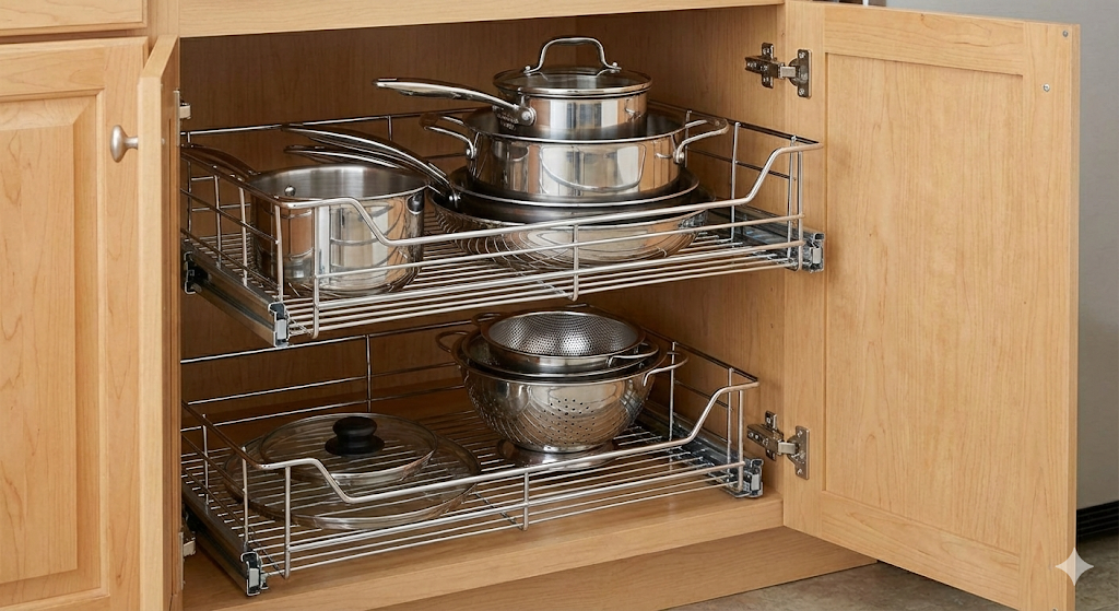 Pull-Out Baskets: These transform deep cabinets into accessible drawers.